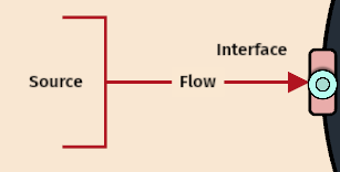 Just like with outputs, you need to connect three elements: the flow, its interface, and its source:
